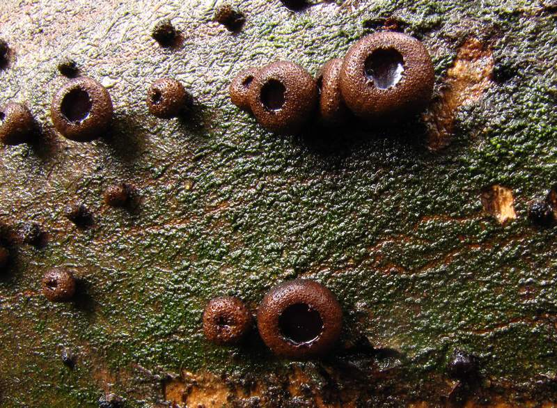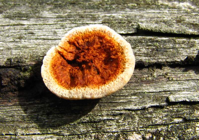 Diese kleinen "gefüllten Schalen" wachsen derzeit auf einem alten Holzgeländer bei Dechow / Nordwestmecklenburg.