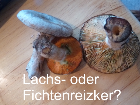 jetzt bin ich doch etwas verunsichert. Gerstern noch habe ich den Fund als Lachs-Reizker identifiziert, heute bin ich doch unsicher ob es doch nicht ein Fichtenreizker ist. Der Fundort ist Mischwaldrand, nasser Boden auf Wiesenwaldboden. Anfangs blutrot milchig, nach ca 1 Stunde etwas weinrot, Stiel hohl, aber nun später doch grünend, was wohl so wie ich mich belesen habe nur beim Fichtenreizker vorkommt.