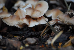 ich habe heute in meinem Garten, eine Gruppe kleiner (Hutgröße 1-4cm) entdeckt. Der Stil ist violettfarben und leicht behaart. Am Anfang des Stils befindet sich ein richtiger Pilzbüschel. Leider finde ich in meinem Pilzbuch keine Abbbildung. Vielleicht kann jemand hier den Pilz, mit Hilfe der Bilder bestimmen. Standort ist auf Rindenmulch.