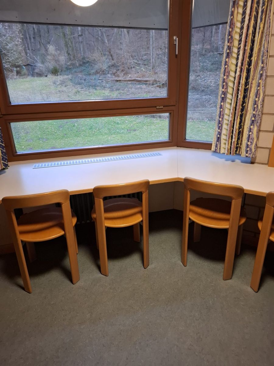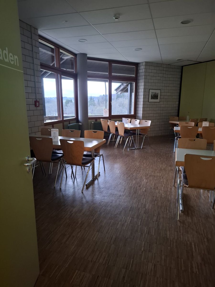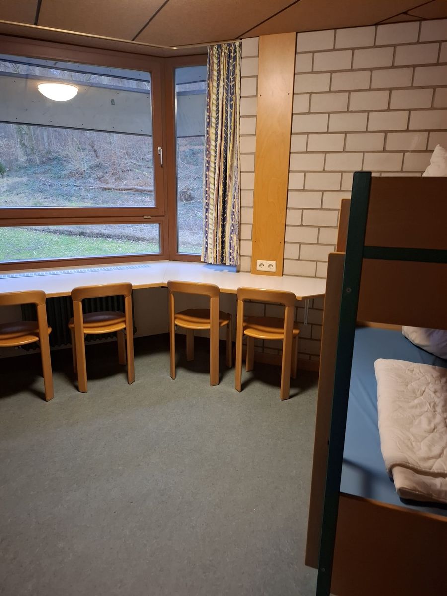 Die Zimmer und einen Aufenthaltsraum habe ich mir angeschaut – sind OK. WC und Dusche pro Zimmer sind da. Wald ist hinter dem Haus.