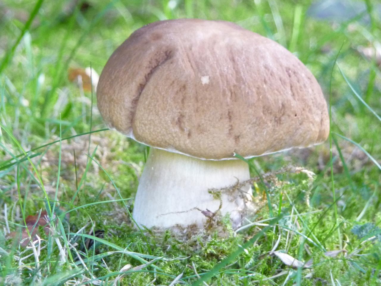 oh, Pilze unter dem Gartentrampolin! Ui, sieht aus wie ein Steinpilz.