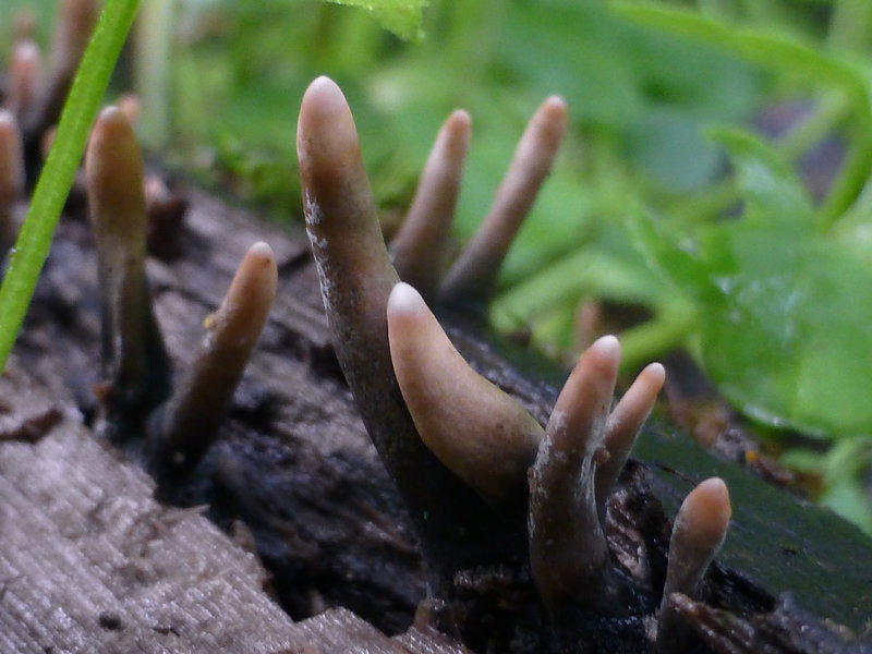 Was für Keule ist das? Könnte es irgendwann eine vielseitige Holzkeule Xylaria polymorpha werden? Die wuchsen auf einem dicken Ast im Schloßpark, in der Nähe gab es Buchen, Eichen, Ahorn und ein paar Nadelbäume.