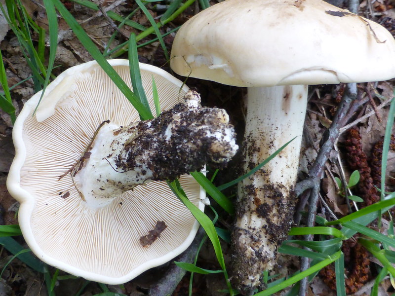 Der Pilz roch für meine Nase nicht unbedingt nach Gurke, sondern eher nach Rettich. Aber bei den Gerüchen bin ich so wie so keine gute Expertin. Zu Hause habe ich ein Hut unter ein Glas gepackt in der Hoffnung, Sporen zu sehen. Das weiße Blatt blieb jungfreulich weiß. Ich hätte wahrscheinlich ein dunkles Papier wählen sollen. Da ich gelesen habe, dass der Geruch auch beim Kochen nicht verschwindet, bin ich mir nicht sicher, ob ich den Pilz essen möchte. Im russischem Forum wurde mir Knoblauch empfohlen, eventuell schmeckt er mir dann besser. Namensloser Kandidat Nr. 1