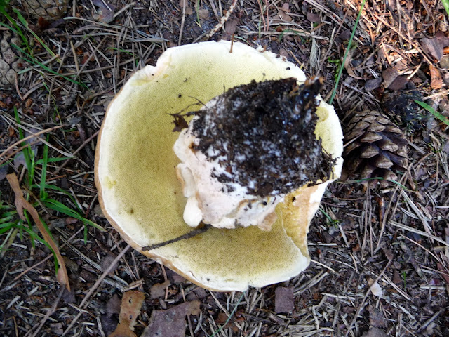 Bei diesem Pilz war ich unsicher, ob es ein Röhrling ist. Der sah so anders aus, nur ausdrehen aus der Erde hat sein Geheimnis gelüftet.
