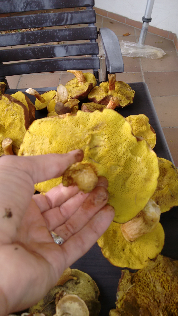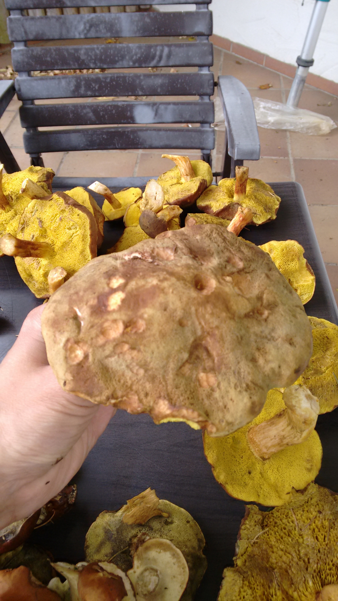 Hab die Pilze mal mit, bin mir aber momentan nicht sicher, was das ist - laut Google würde ich auf einen goldporigen Röhrling tippen. Seht ihr das auch so? Kann man den ohne weiteres Essen?