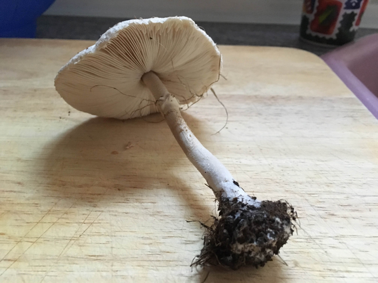 Ich bräuchte mal wieder eure Hilfe... Ich glaube, das ist kein Wiesenchampignon, da er weiße Lamellen hat...