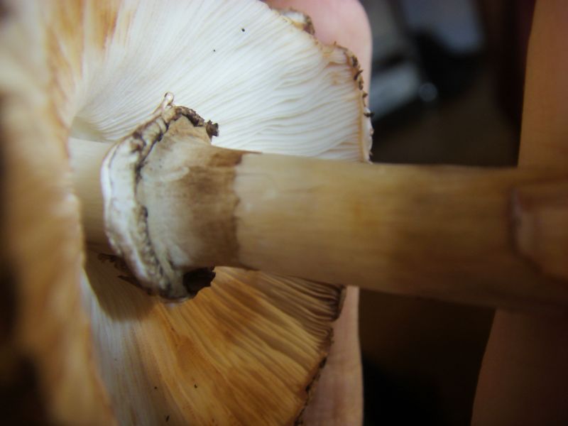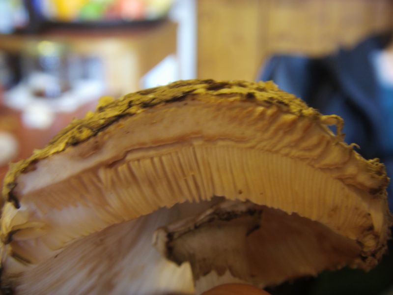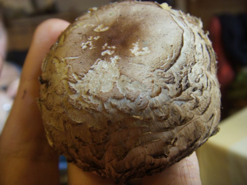 Er riecht süß wie ein Champignon ist für einen Parasol recht klein so zischen 4 und 15 cm sag ich mal.