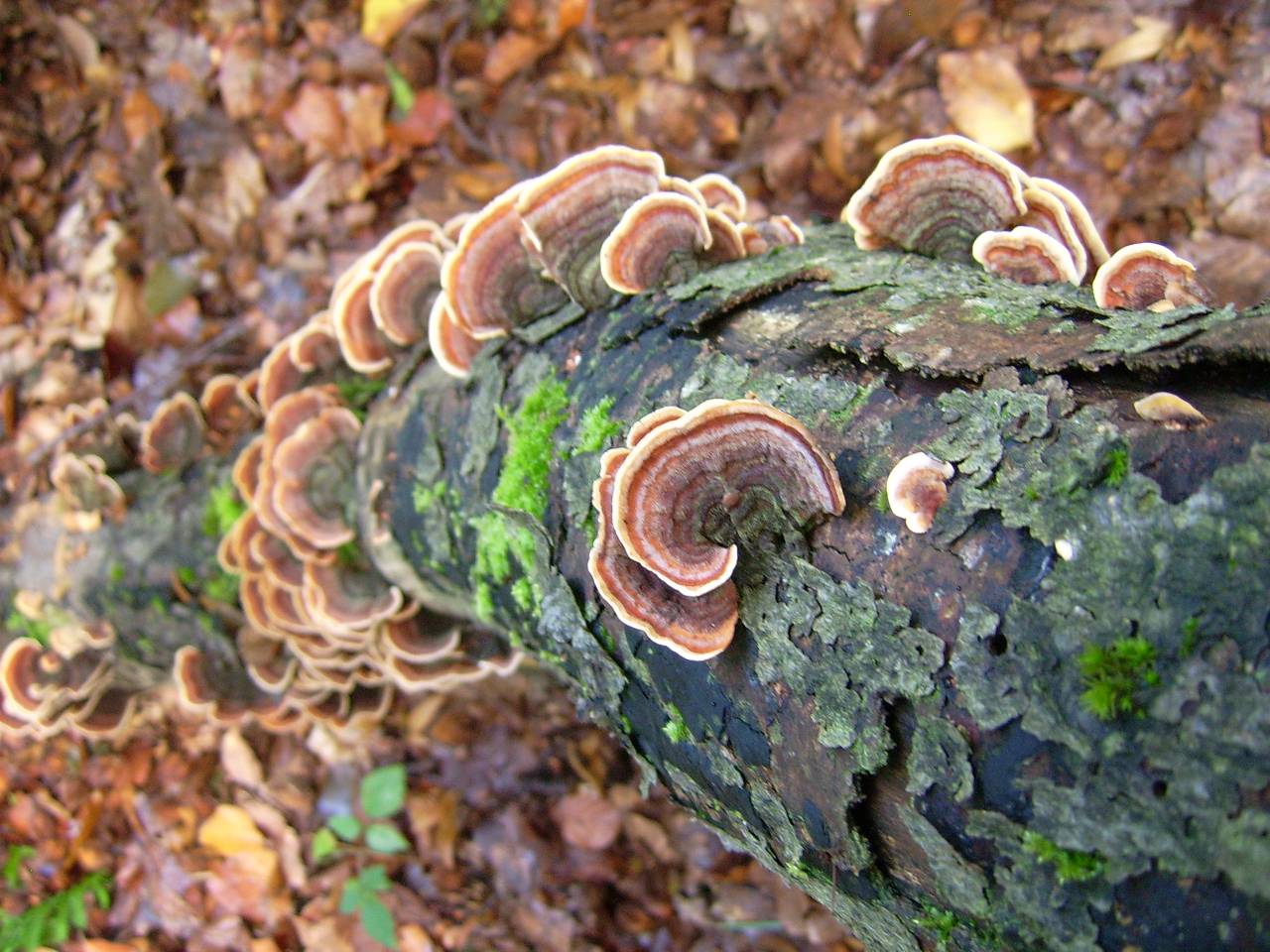 #19: Das könnte eine Tramete (var. tricolor) sein, oder doch ein alter Zaunblättling?: