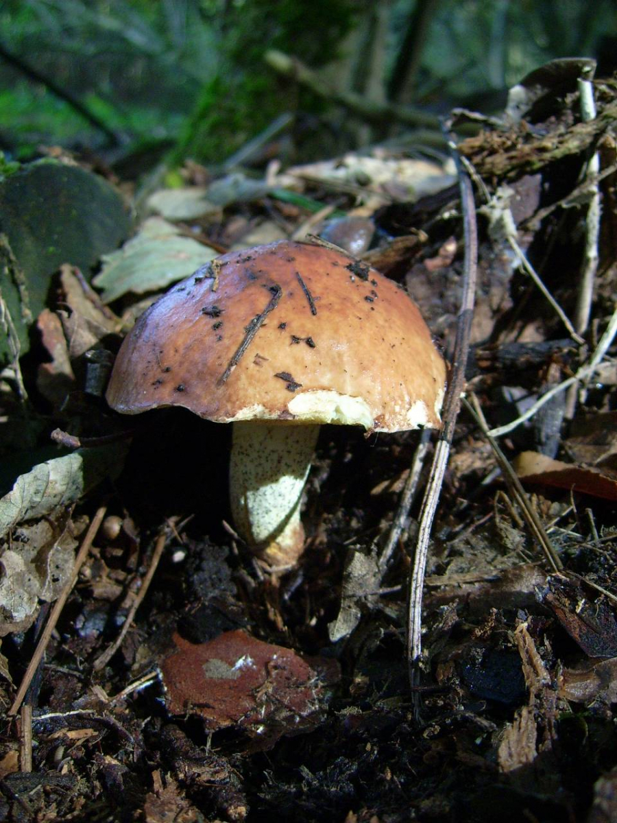 #30: In der fast senkrechten Uferböschung schauten mich dann in Augenhöhe meine ersten (vermuteten) Hexenröhrlinge an, leider ist die Aufnahme verwackelt: