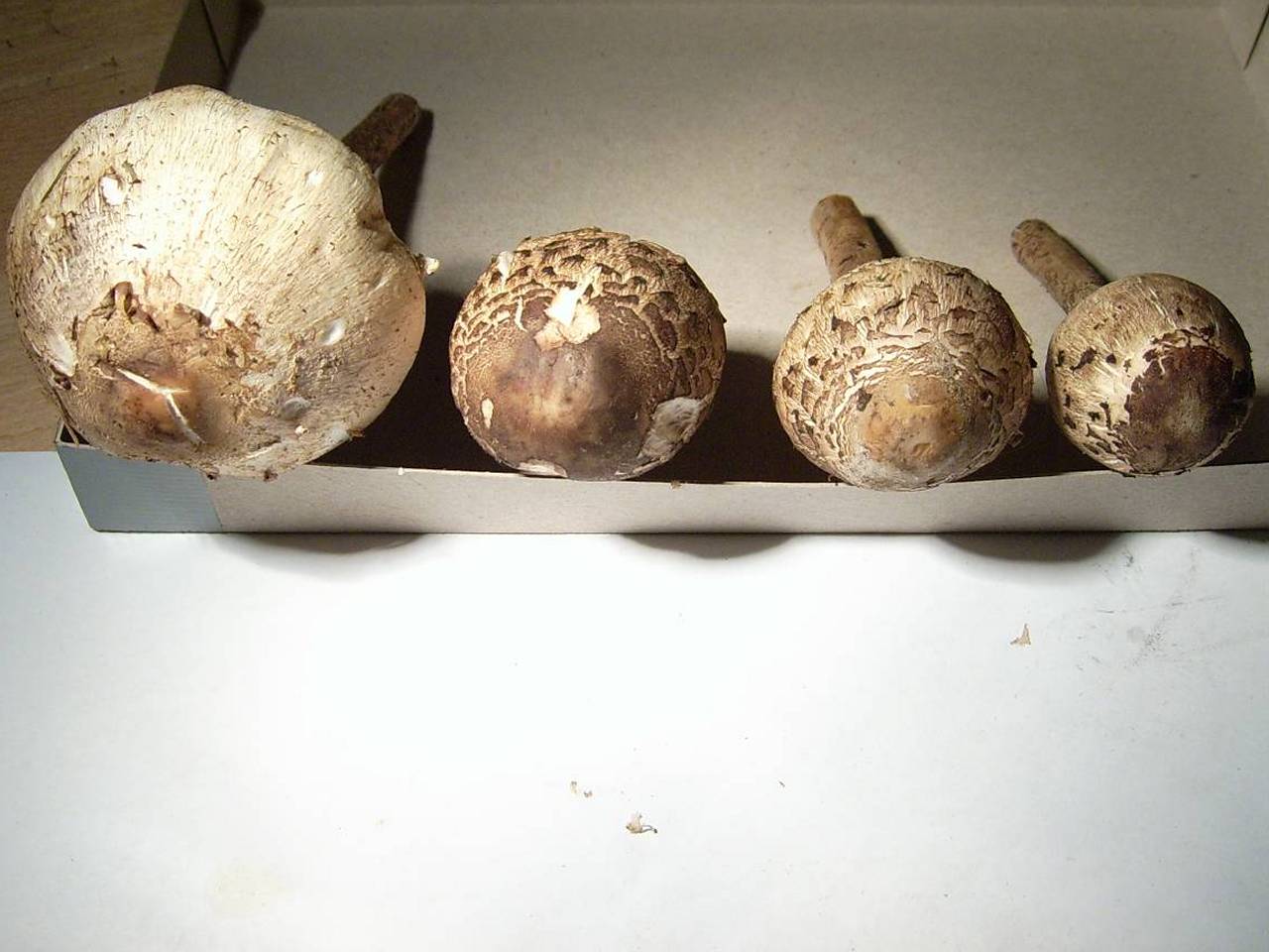 Mich würde brennend interessieren, wie ihr die folgenden Schirmlinge einschätzt, sie haben/hatten allesamt einen beweglichen Ring, alle Stiele haben auf dem Bild einen kleinen Anschnitt: