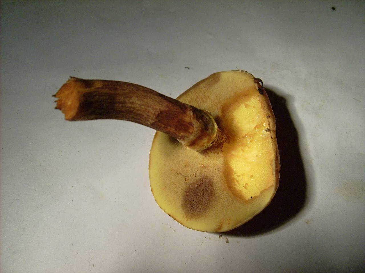 #22: Ein Röhrling (P gelb, F ungekammert weiß bis gelblich, nichts davon blauend), sofort gepflückt, weil...:
