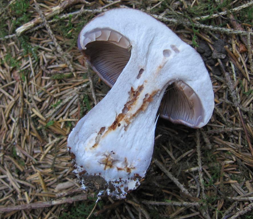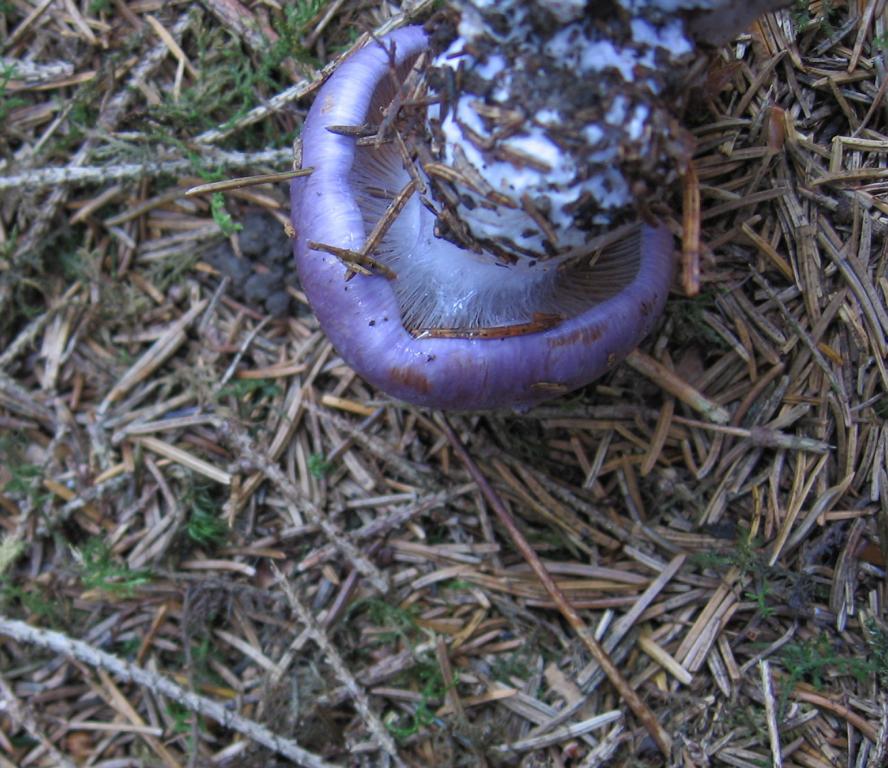 Stiel: 5cm, gesamt ca. 6,5x 2 Basis 3cm, lila etwas heller als Hut, im Durchschnitt Hutfleisch weiß, Stielfleisch gräulich.