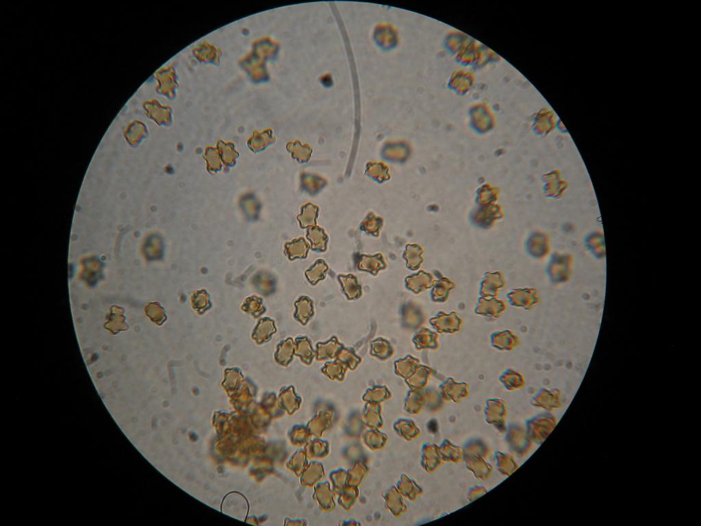 Sporen: s. Bild. Wie mißt man den solche Sternchensporen? Ich hab jetzt mal die längste und breiteste Seite gemessen. 10 Sporen zwischen 8-9 x 5,5-6,5 µ.
