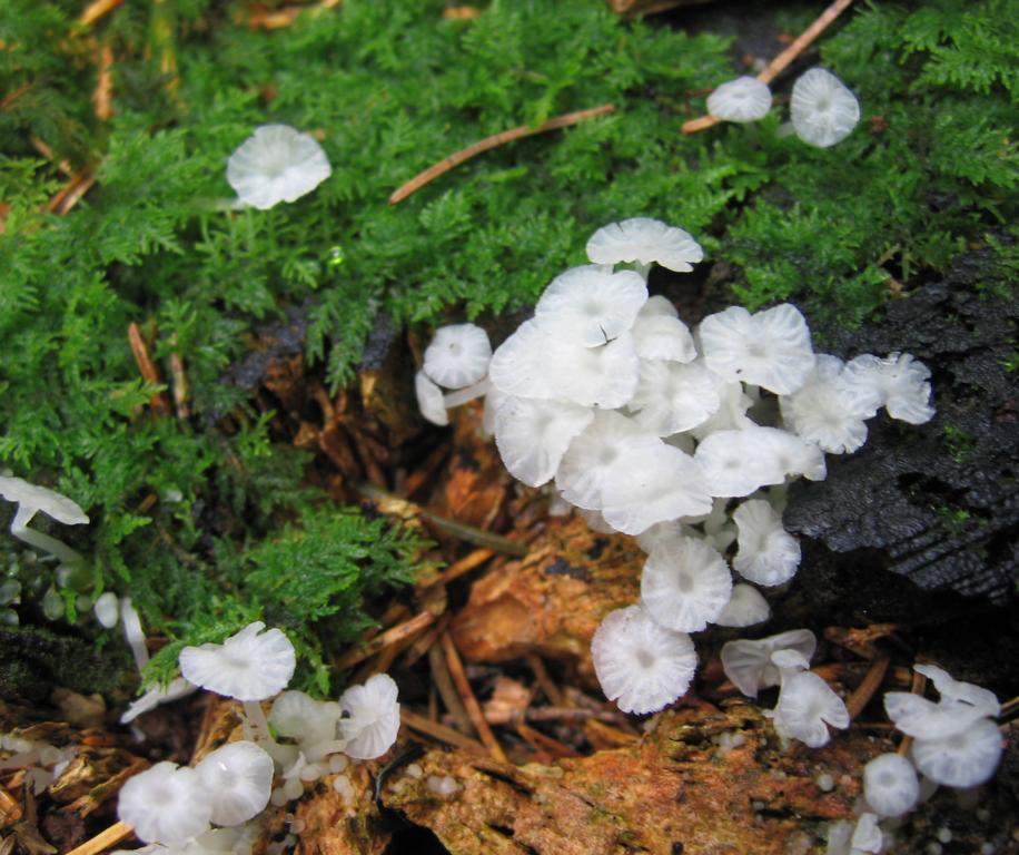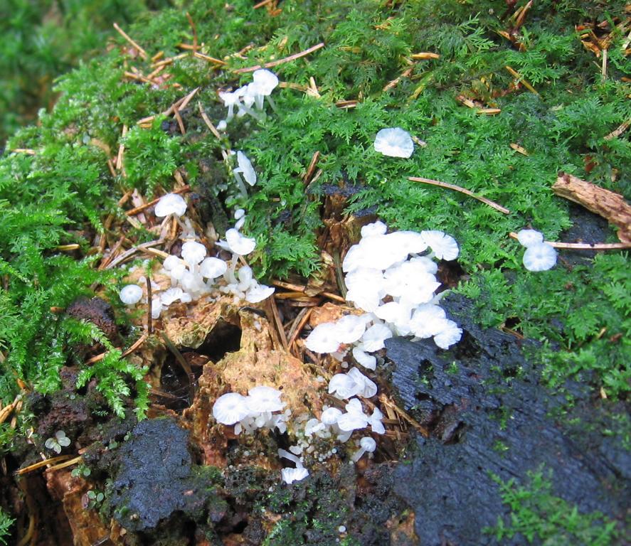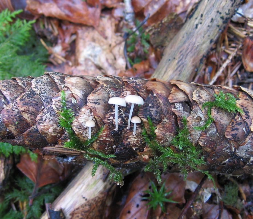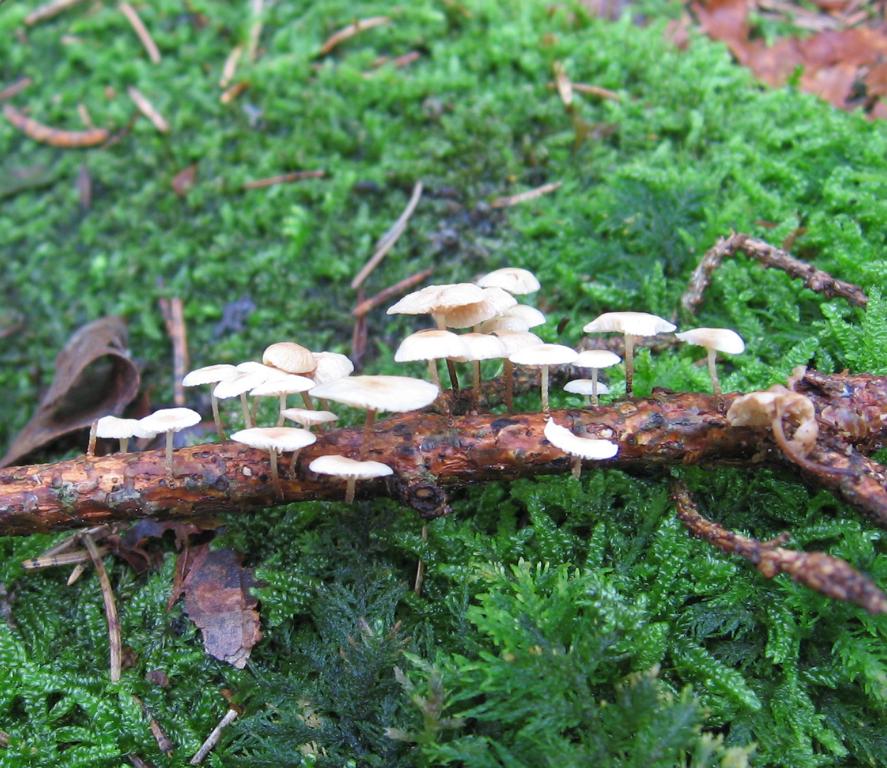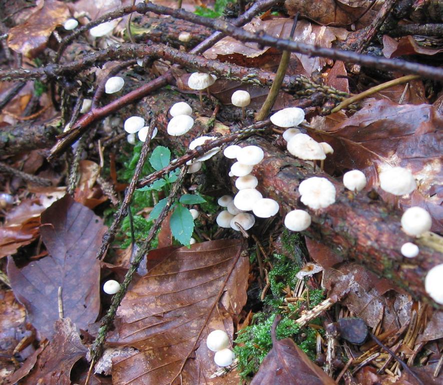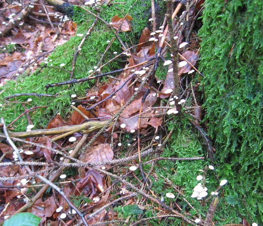 VK: Waldrand Forststraße, Mischwald überwiegend Fichten, etwas Buchengesträuch, auf Erde, gesellig.
