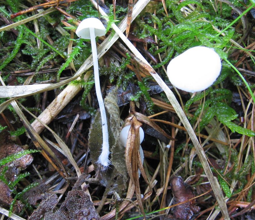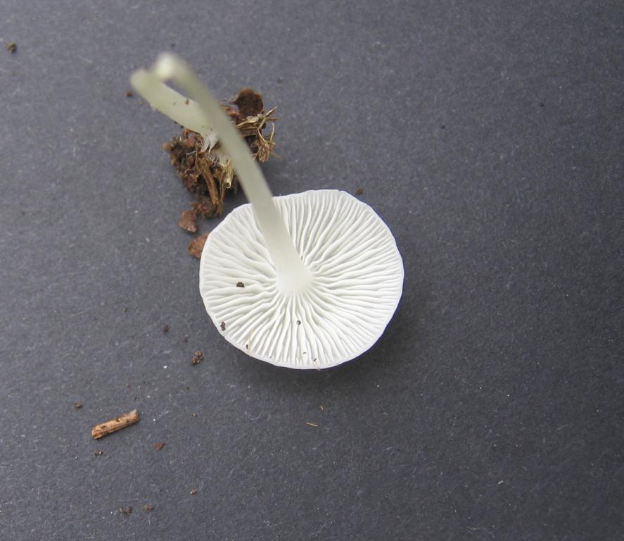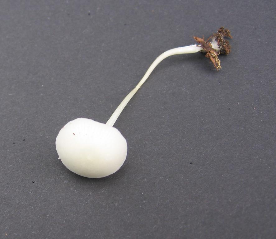 Stiel: 5cm x 1mm, weiß fast transparent, gerade etwa gleich dick, von der Mitte bis zur Basis haarig oder wurzelig.