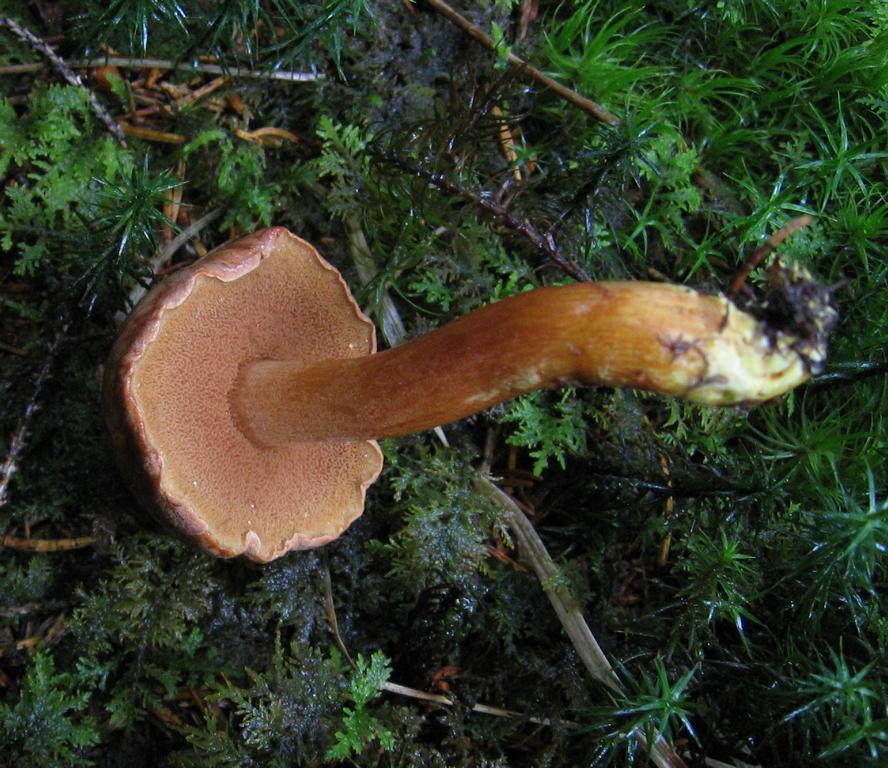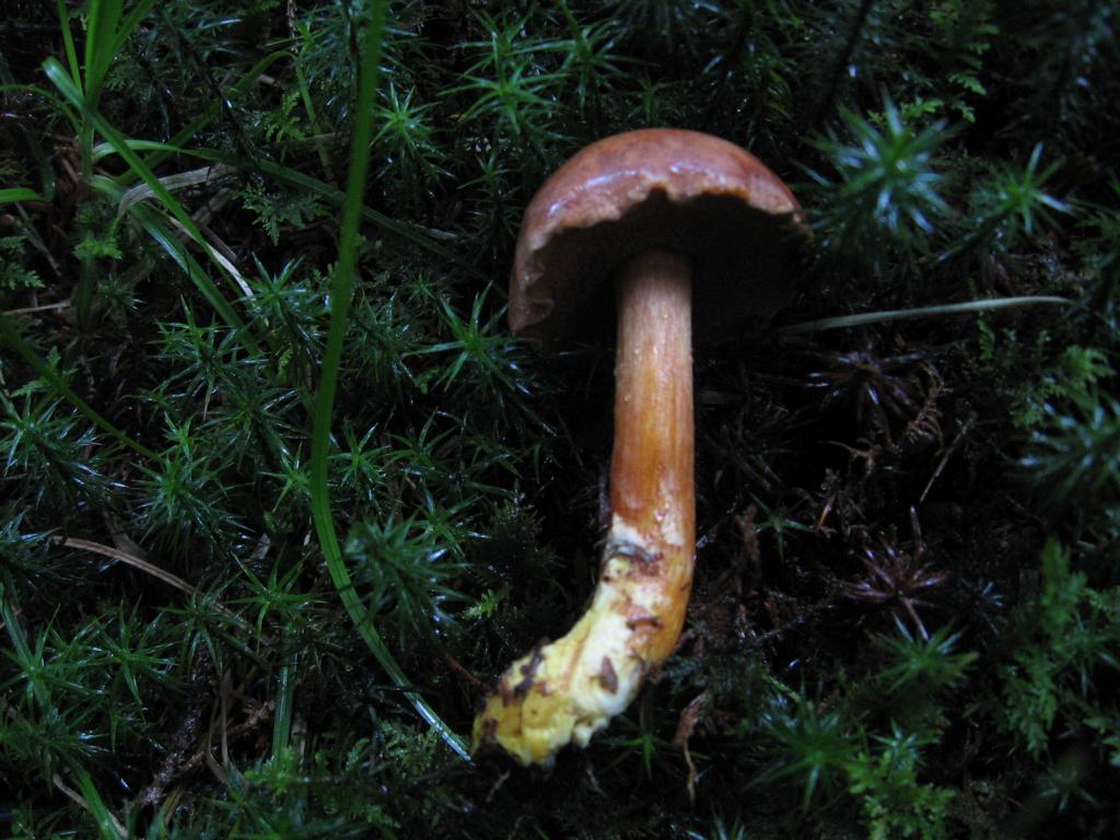 Stiel: bis 7 x 0,8cm vielleicht etwas heller als der Hut Basis knollig mit weißem Mycelfilz