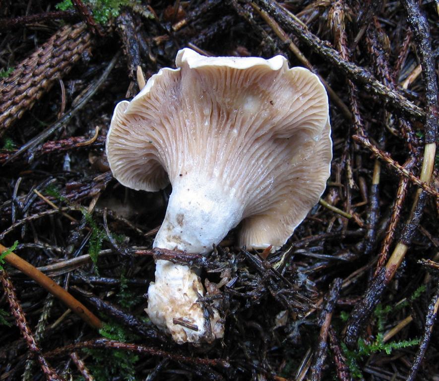 Vorkommen im Mischwald unter Fichtenstreu, gesellig bis zu mehreren verwachsen.