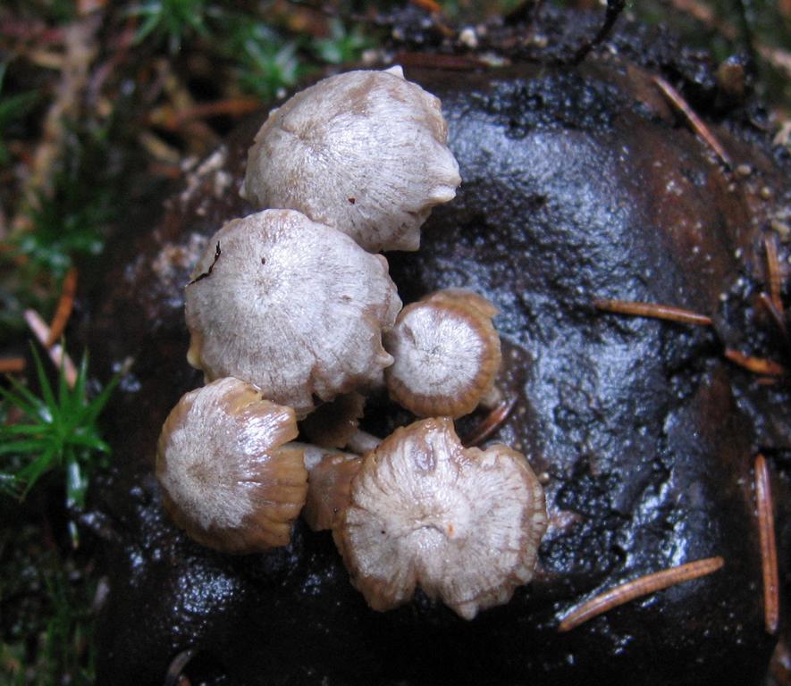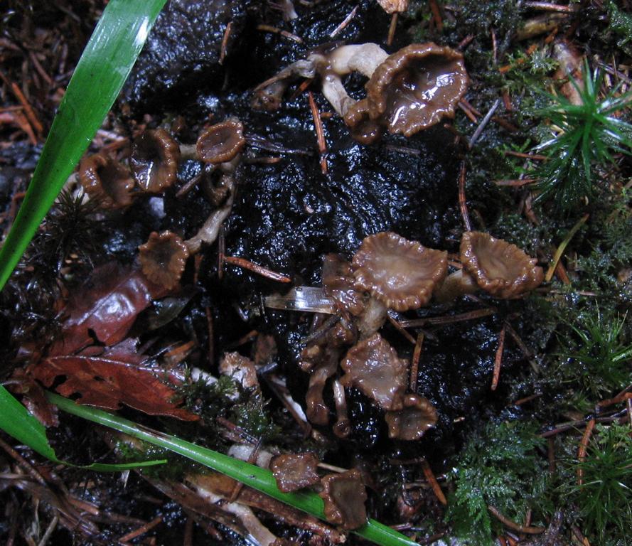 Der andere Pilz dürfte ein Kaffeebrauner Gabeltrichterling (Pseudoclitocybe cyathiformis)sein. Warum eigentlich Gabeltrichterling?