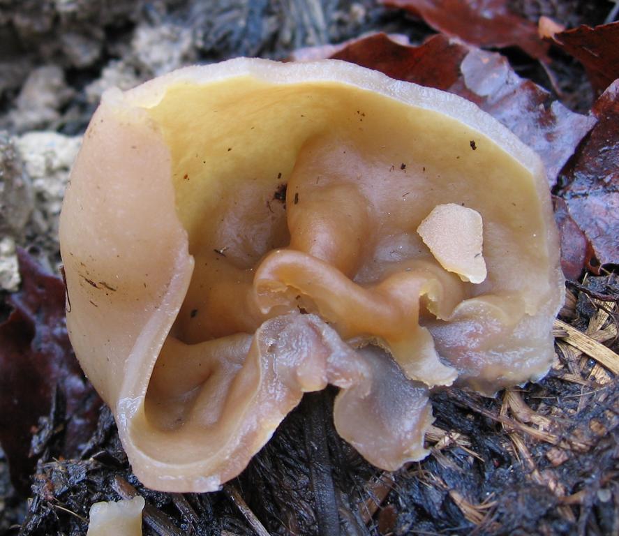Das Becherchen mit seinen Eiern ist ca. 0,4 x 0,3cm gross und wächst unterm Birnenbaum und anderem Gesträuch auf Mulch. Hab mal eien Teuerling gefunden, vor Jahren, der schaute ähnlich aus nur grösser.