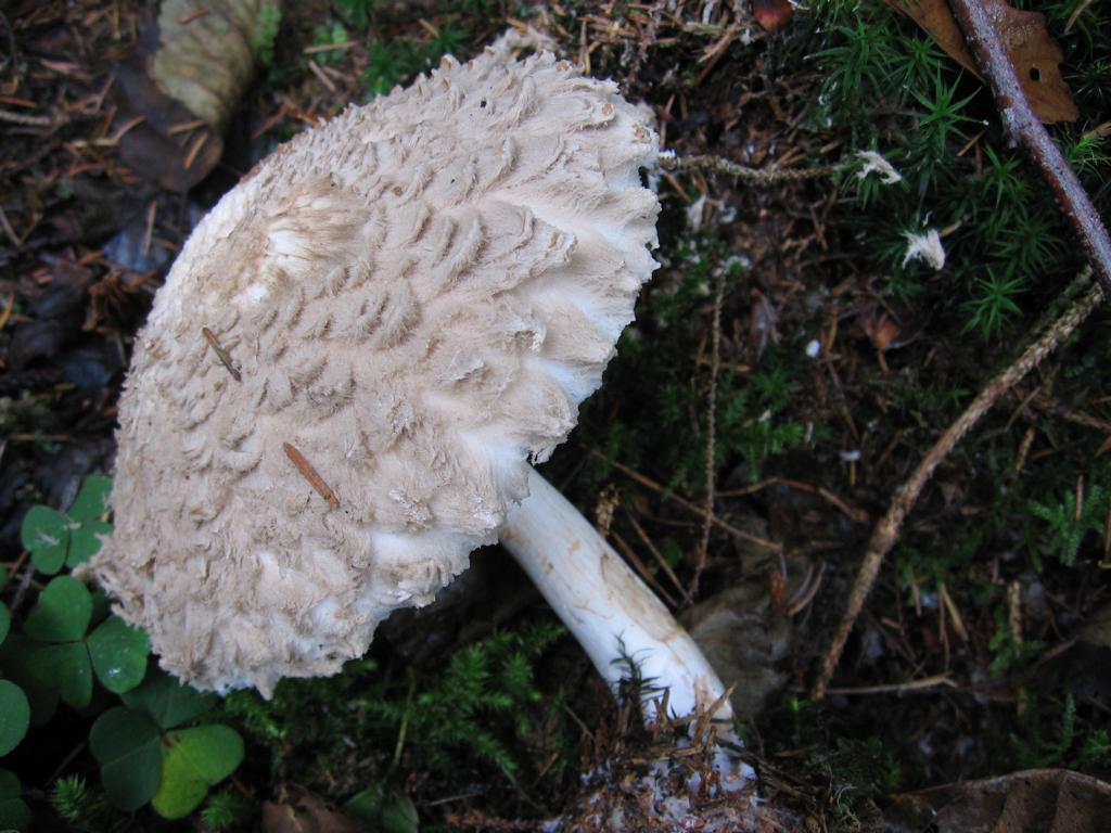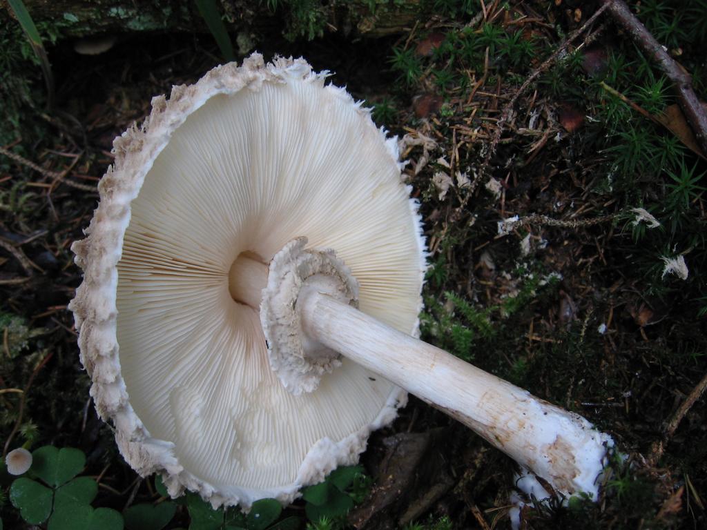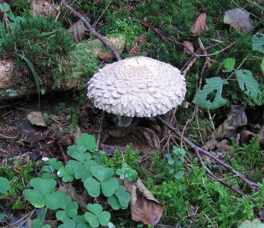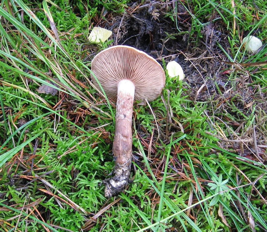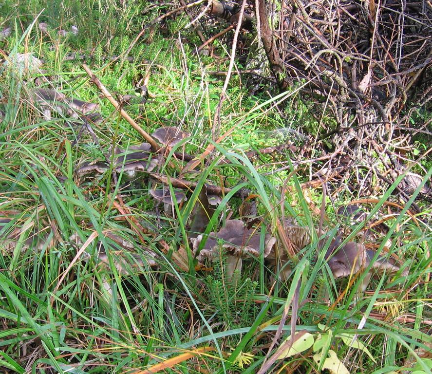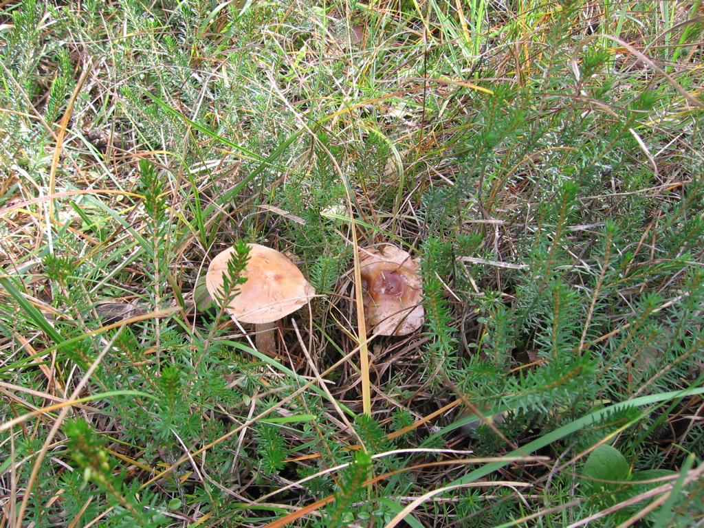 VK: Am Wegrand in Gras und Moospolstern bei Fichte und Blattgesträuch.