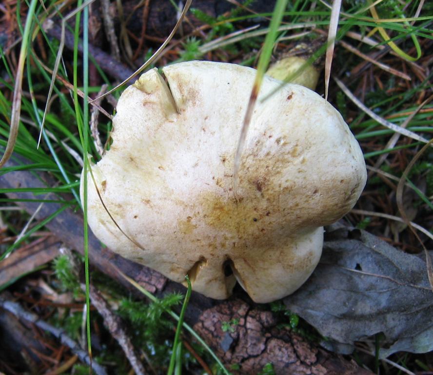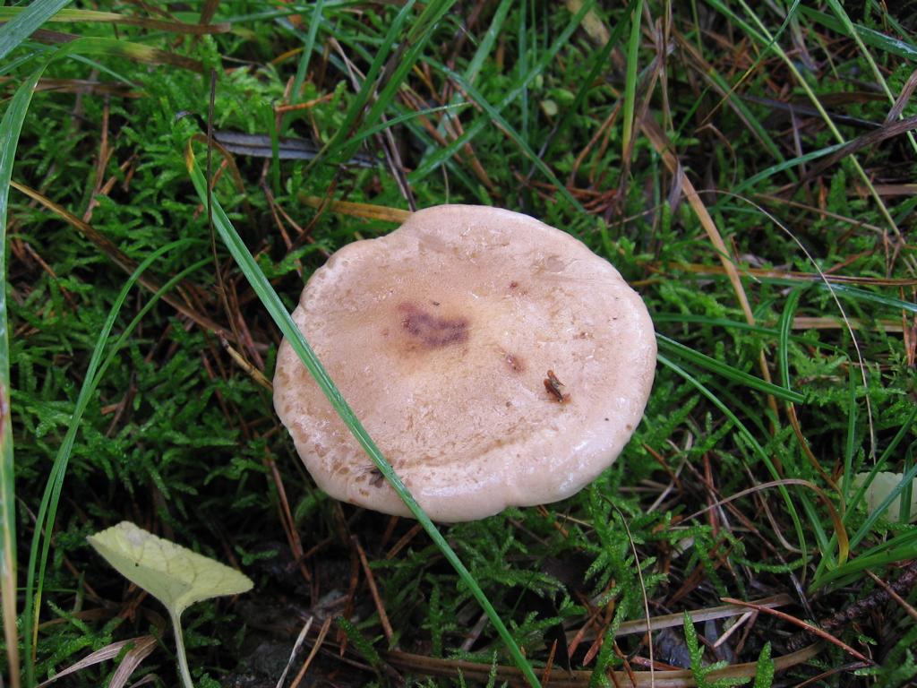 Hut: 12cm erwachsen, erst konvex mit leichtem Buckel später ausgebreitet, blass gelbgrünlich zur Mitte etwas braunrötlich und leicht fleckig