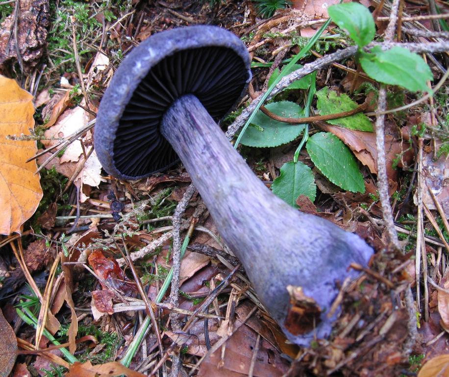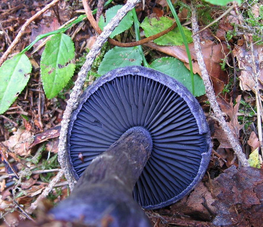Ich denke es ist der Nadelwald-Dickfuß (Cortinarius harcynicus) evtl. auch der Dunkelvioletter Dickfuß (Cortinarius violaceus), waren aber ausser ein paar angewehte Blätter ringsum nur Tannen und Kiefern.