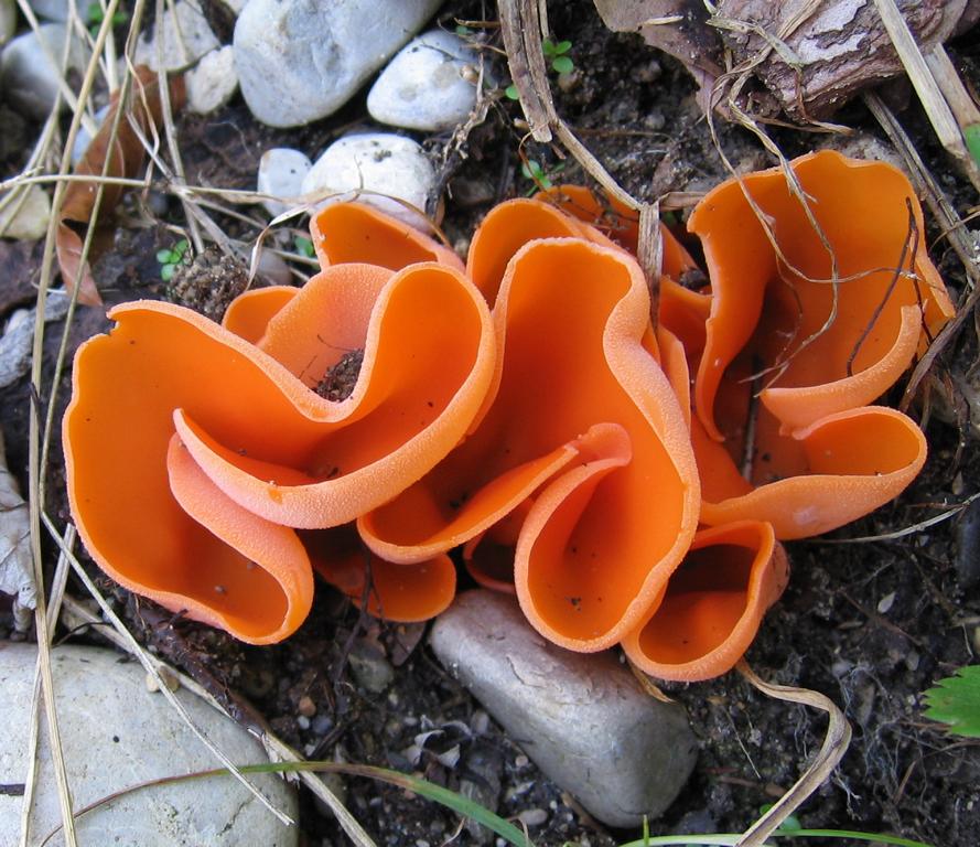 Zum Schluss als vierten Kandidaten den Orangeroten Becherling (Aleuria aurantia)