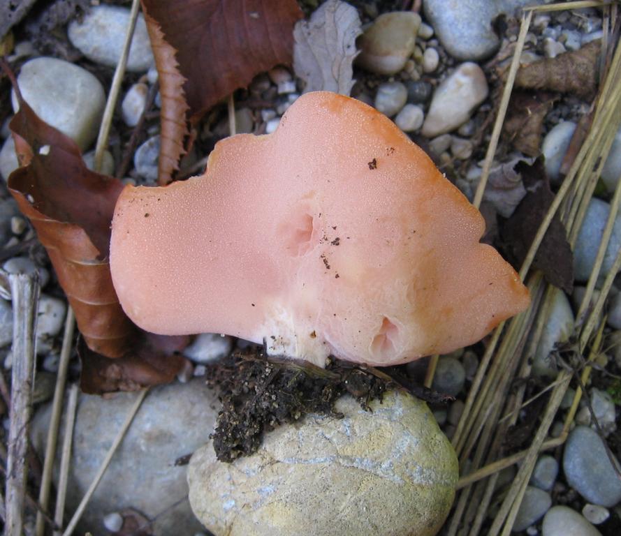 Der grosse FK , Höhe ca 6cm, Durchm. ca 10cm, aussen graubraun matt, innen ockerfarben, feucht glänzend, etwa 1mm dick.