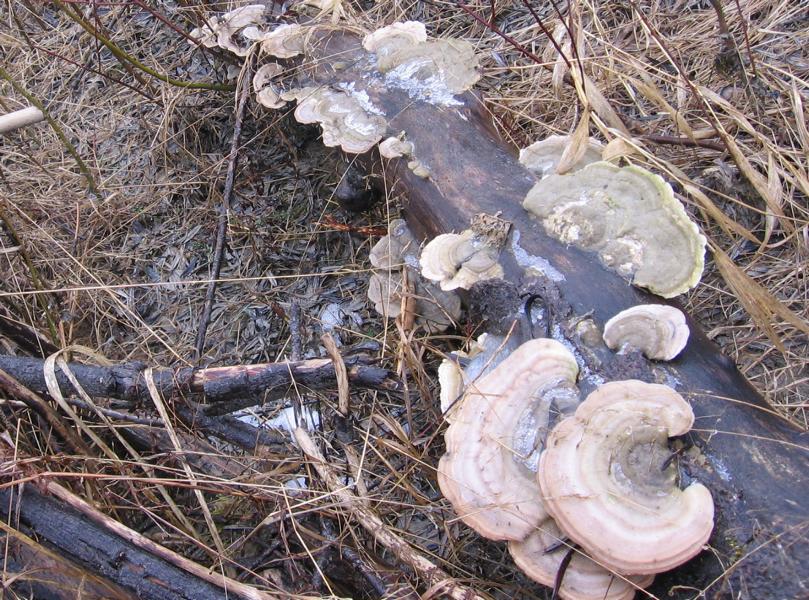 Bei den ersten Bildern könnte ich mir einen kleinen Falschen Zunderschwamm vorstellen. Wenn`s einer ist, sind das die gleichen Pilze?