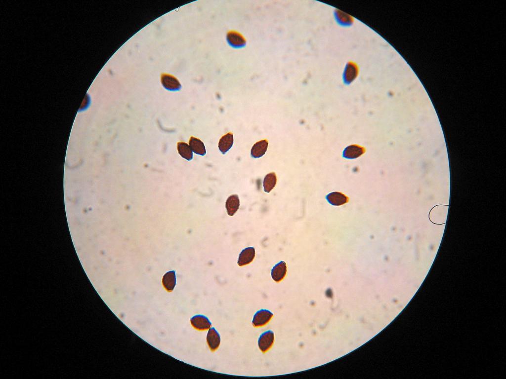 Sporen: ellipsoid, leicht kahnförmig, Keimporus abgeflacht, mit Appendix, glatt, dickwandig, 14-17 x 6-8 /MW von 10St. 15,6 x 7,5 µm.