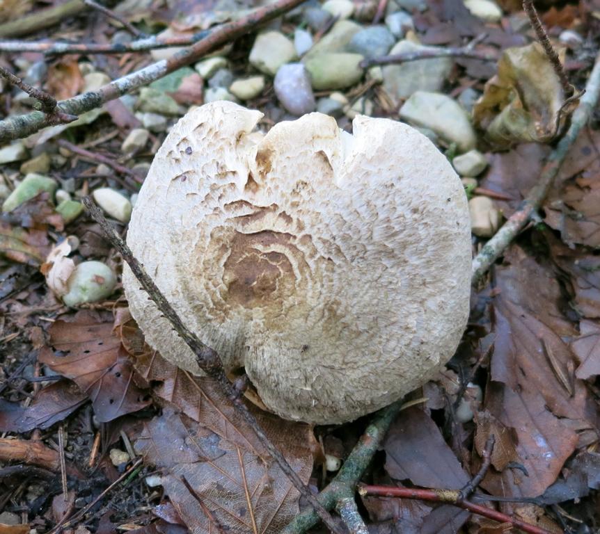 Vor 2-3 Jahren hatte ich mal einen gefunden der ist als solcher bestimmt worden und diese hier sind vom Substrat und allen anderen Merkmalen identisch.Hut: DM 15cm, ganz mit graubraunen Schuppen bedeckt, das Zentrum dunkler braun, der Rand eingebogen.