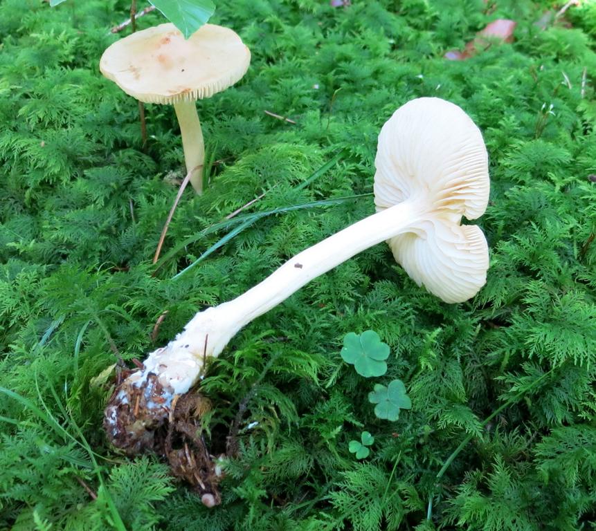 Stiel: an der Basis knollig keulig, cremefarben, schwache Ringzone mit rostbraunem SP bestäubt.