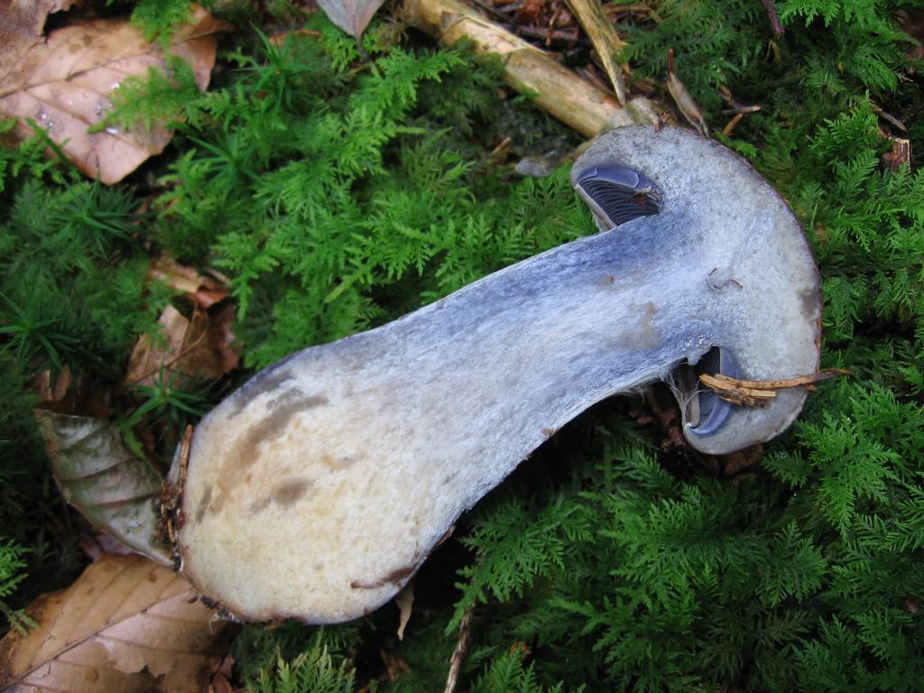 Fleisch: weiß evtl. eine Spur gelblich, Hut nach ankratzen auch, dünnfleischig bis aufs Hutzentrum