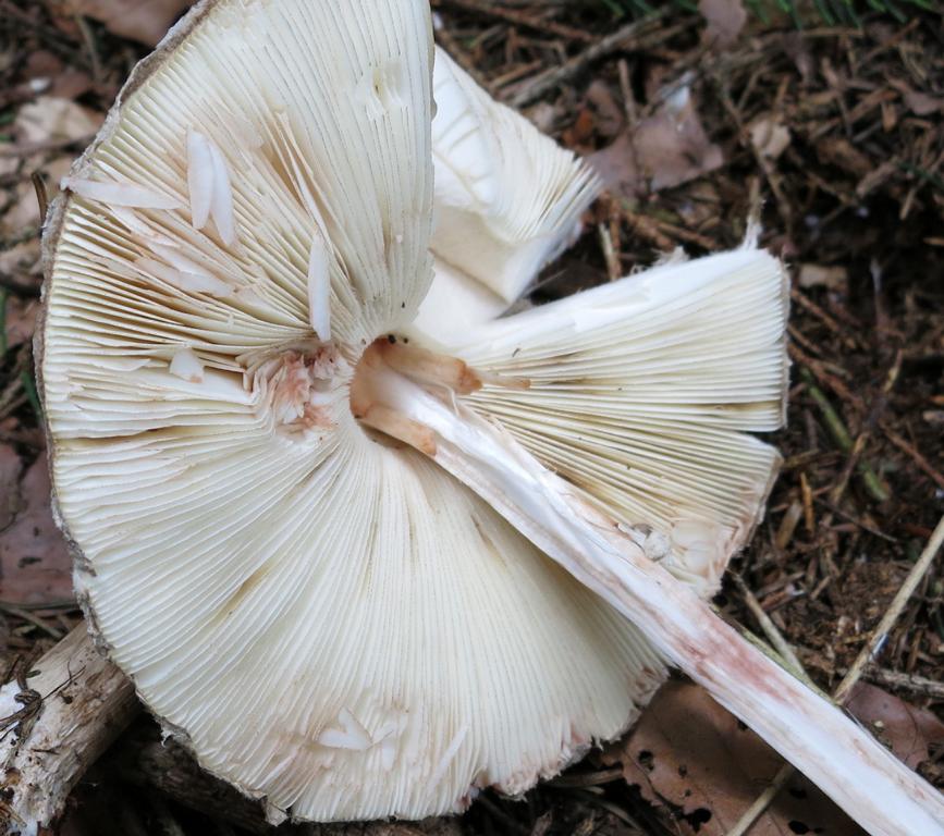 Lamellen: wahnsinnig eng, frei, weißlich, bauchig, dünn, mit Lamelletten.
