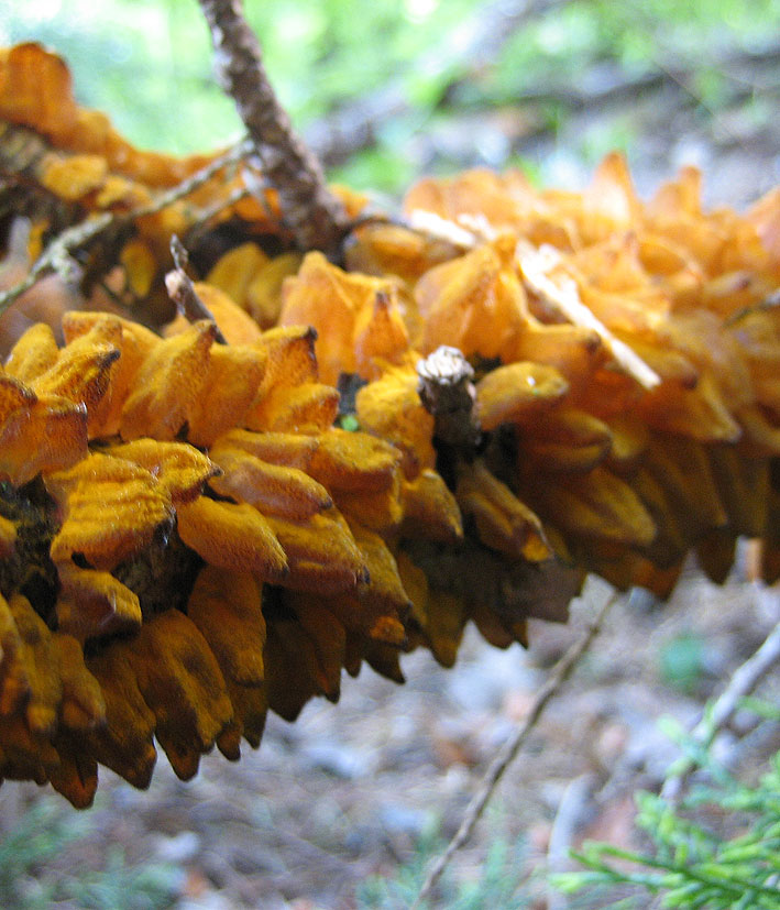 Buäh, vielleicht ist es ja auch gar kein Pilz......Jedenfalls stirbt der Baum davon, die Nadeln werde einfach gelb und ich habe schon die Hälfte des Baumes absägen müssen.. Ich habe das schon letztes Jahr bemerkt, allerdings nur als braune Kruste auf der Borke und nicht als gallertartiges Wabbelzeugs. Ekelig ist gar kein Ausdruck. Durch den Regen ist die Hälfte davon auf den Boden gefallen und ich frage mich, ob ich damit den Boden verseuche.....