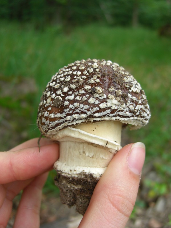 Weshalb sprechen "rote Schüppchen" für den Rotfußröhrling? Der hat doch einen gelben Stiel, der im unteren Teil ins karminrote übergeht. Ich habe auch schon einen Rorfußröhrling gefunden - bei mir erweckt dieser hier aber immer noch den Eindruck eines Flockis, eben gerade weil er einen geflockten Stiel hat. Hier einmal zur Verdeutlichung: