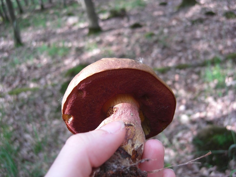 Also bei Deiner Bestimmung komme ich nicht so gut mit. Außerdem waren auch hier die Poren gelb, mit schon einigen rötlichen Flecken darauf: Woher sollte der Rotfußröhrling die nehmen? ![]()