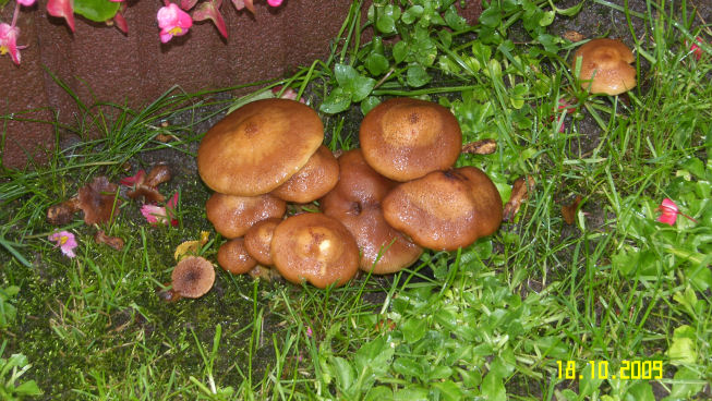 Hallo, und erstmal danke für die Antworten. An Halimasch habe ich auch erst gedacht, aber bei Hutdurchmesser bei den grossen von 12 cm? Ich habe nochmal ein Foto gemacht, es ist auf jeden Fall ein Pilz mit Lamellen !