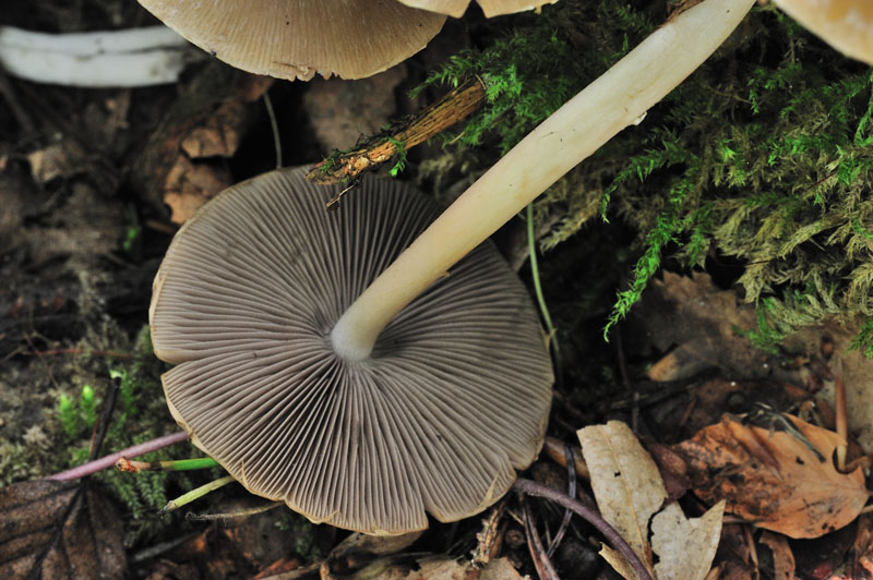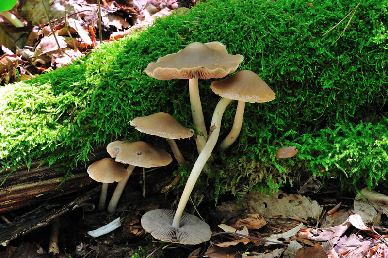 wieder habe ich nichts gescheites gefunden, nur diese hier. sie wuchsen im buchenwald unter einem morschen Stamm hervor. der durchmesser des größten hutes war 7cm der längste stiel war 10cm lang und 8mm dick. er war weiß, faserig zerbrechlich und hohl. die lamellen waren richtig braun. wegen der schwachen beleuchtung sind sie auf dem foto etwas grauer als in wirklichkeit.