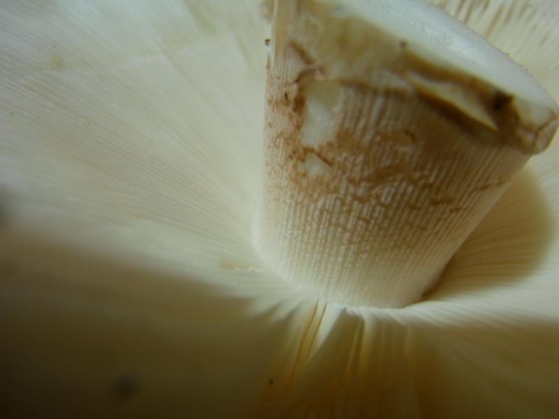 Wenn er gerieft ist und an Fraßstellen oder Wurmlöchern leicht rötet ist es auf jeden Fall ein Perlpilz.