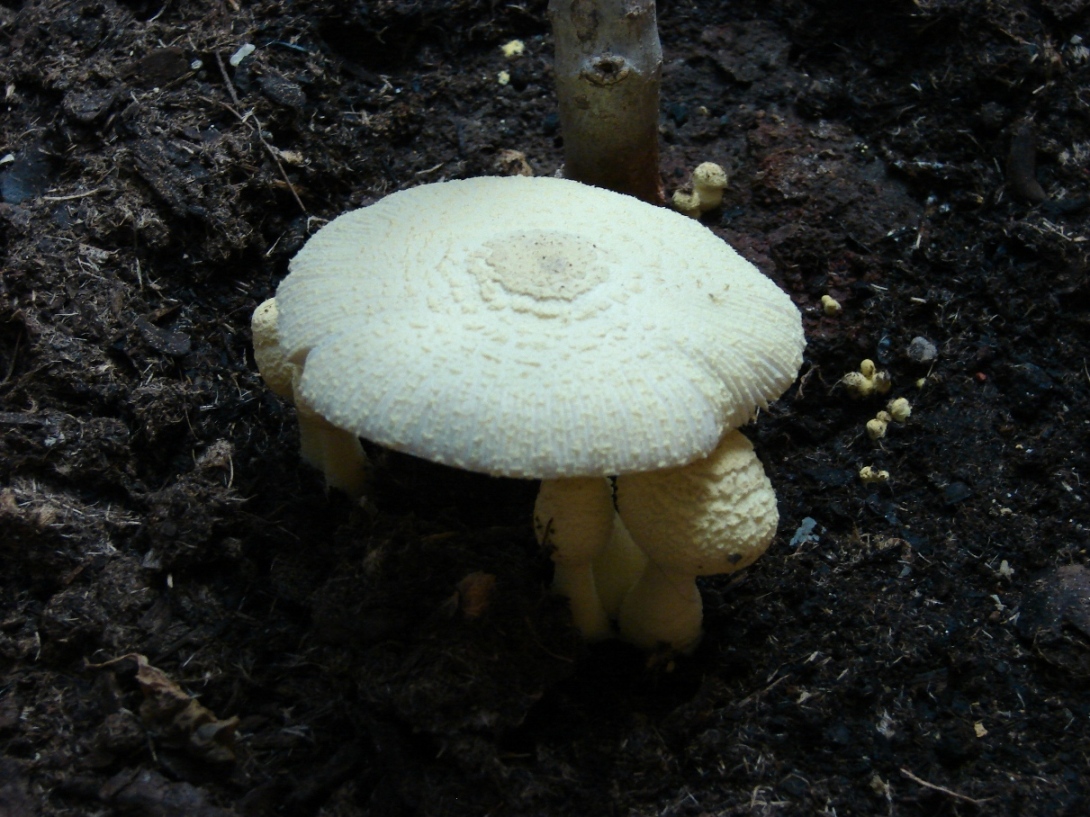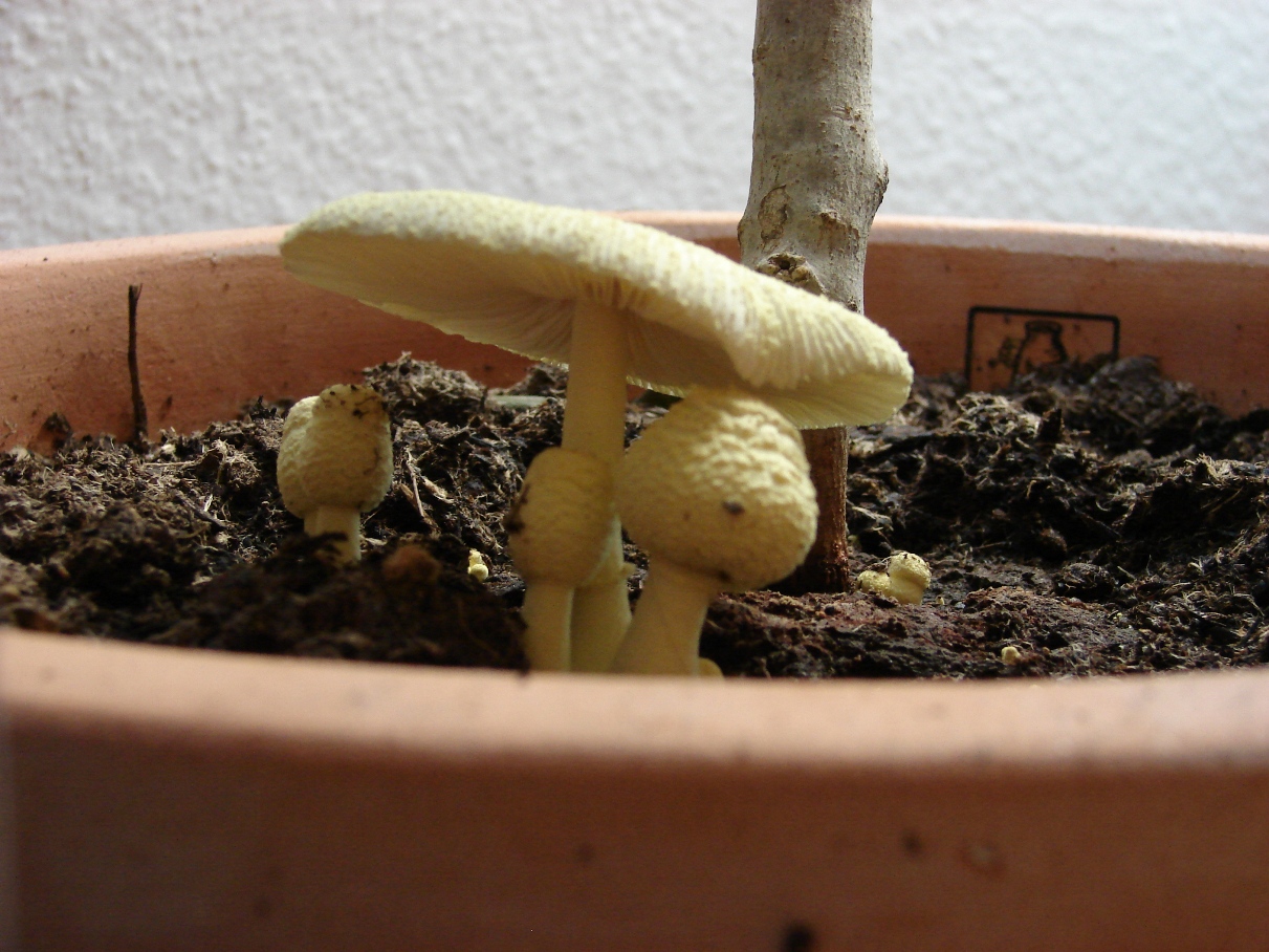 ich habe in meinem Topf, wo eigentlich nur mein Olivenbaum stehen sollte einen Pilz, der gestern noch sehr klein war und heute sehr riesig.