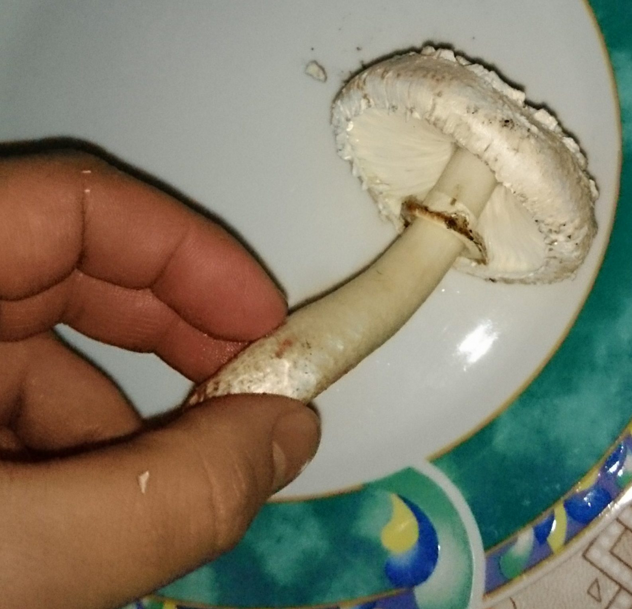 der kleine pilz hat ne baune oberfläche, der pilz ist kürzlich aus der erde gekommen und fängt schnell an zu verkorken bzw an der oberfläche weis zu werden so als würd er schuppen haben und das braune geht weg..