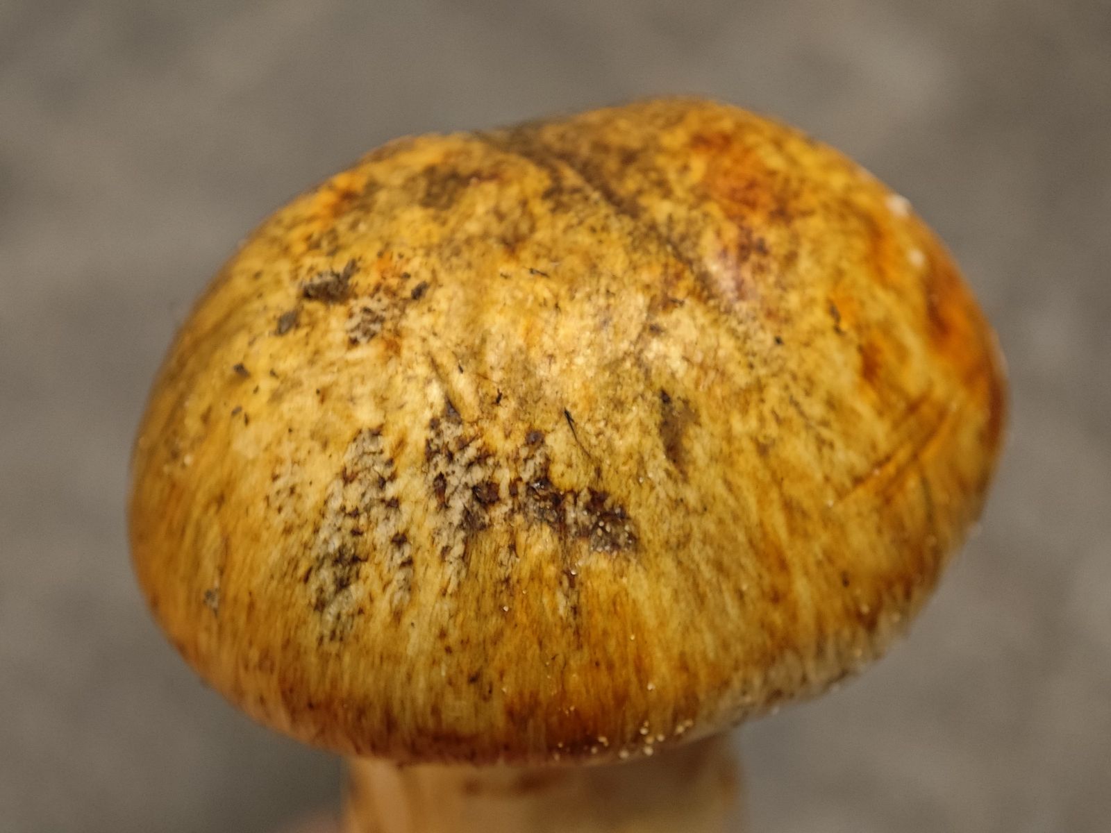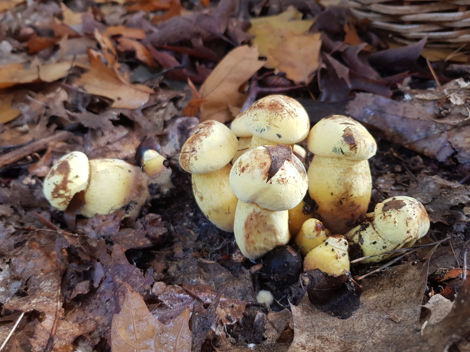 auf der heutigen Runde durch den Wald fanden wir folgende Pilze, die wir nicht geschlüsselt bekommen. Vielleicht habt ihr eine Idee. Auffällig sind der zitronengelbe, feinfaserige Hut (ohne Druck oder Verletzung) sowie der schuppige Stiel. An verletzen Stellen bräunt der Pilz relativ schnell.