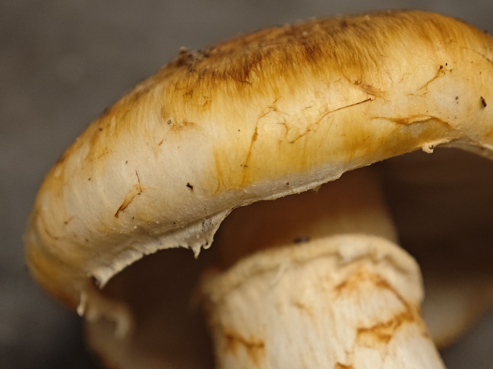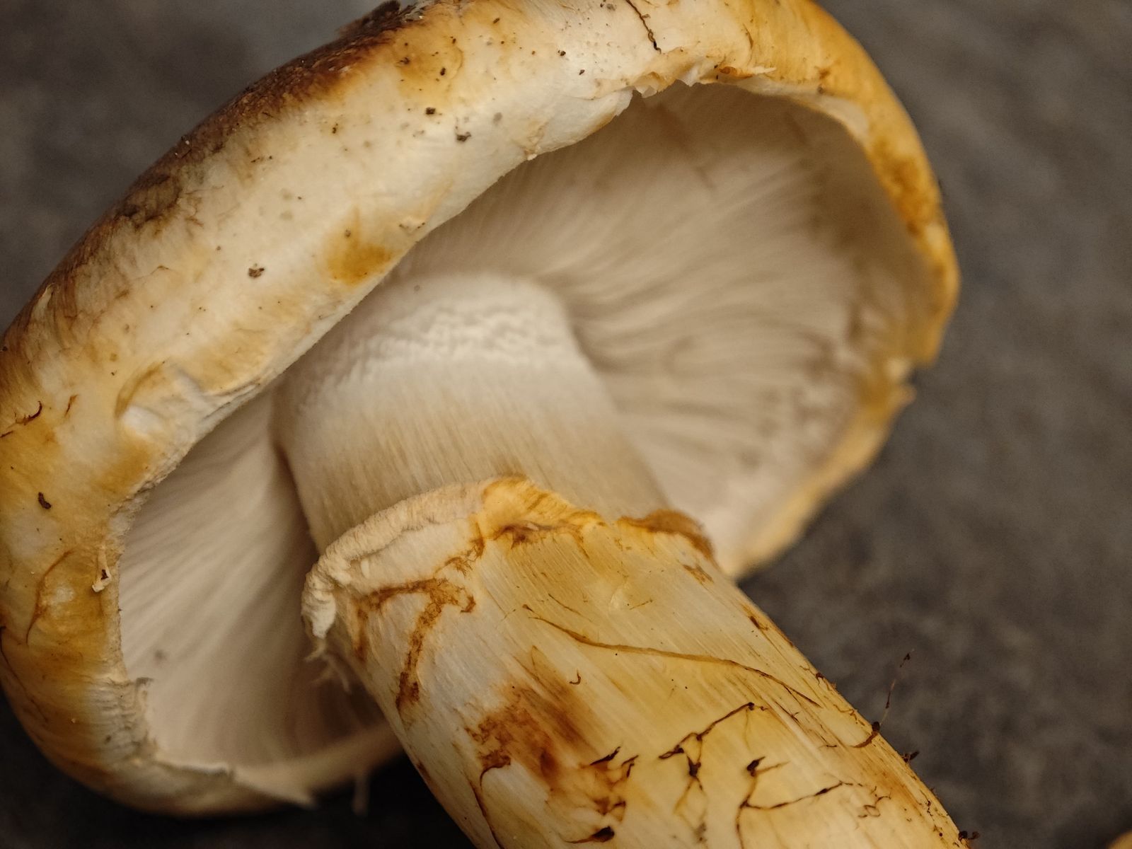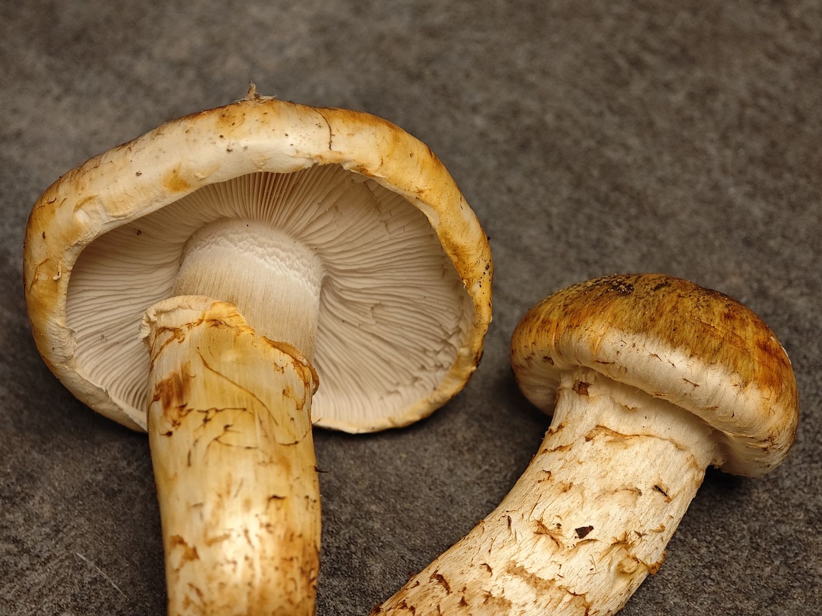 Stiel : weiß, flockig knollige Stielbasis, Myzelfilz, oberhalb hohl werdend