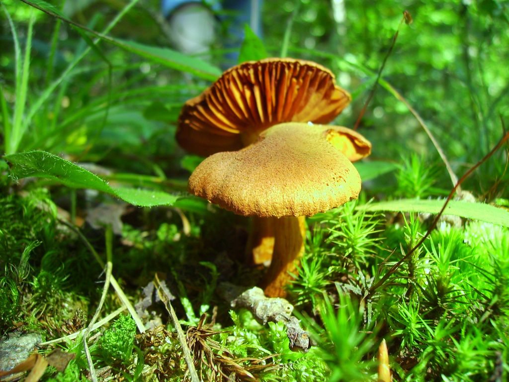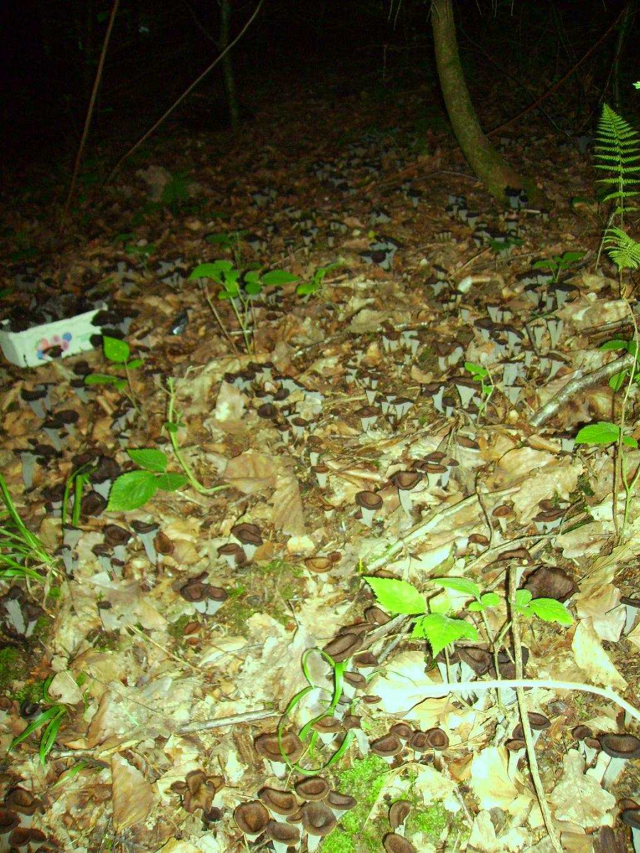 Auf der ungeblitzten Fotografie sieht man die Pilze nicht so gut.