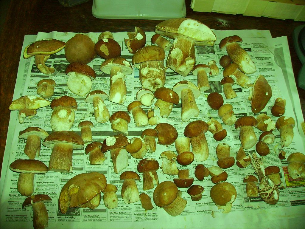 die ich in einer dreiviertelstunde eingesammelt hab! (Ich hab die halbe Nacht Pilze gesehen im Traum) Bilder kommen heute abend.Gruß aus dem Schwarzwald