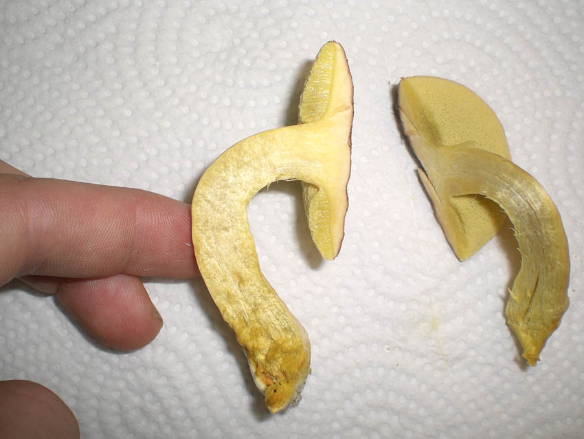 Deine Beschreibung des Xerocomus Declivitatum scheint auf meinen Pilz absolut zuzutreffen. Ich habe noch mal eine Nahaufnahme der Karottenroten Punkte bzw. Flächen an den Beitrag angehängt.