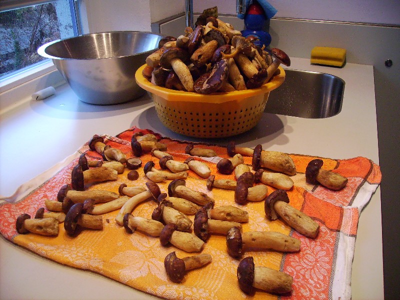 Anschließend ging ich weiter zu einem Weiher, an dem gestern Netzstielige Hexenröhrlinge in Massen kamen. Leider waren nicht mehr soviele dort, die hatte wohl schon jemand abgegrast. Dennoch fanden sich ein paar Exemplare.