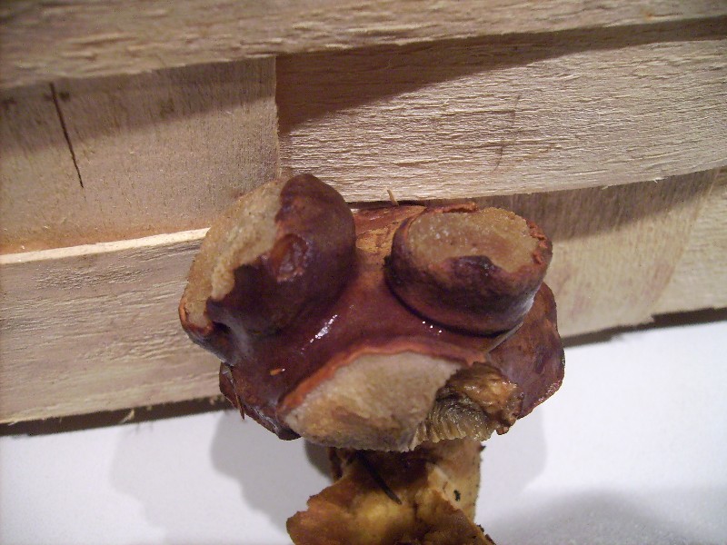 Neben diesen Pilzen fanden sich auch noch andere.Diese hatten einen hellen, schleimigen Hut. Leider sind die Bilder von Ihnen nicht so grandios, aber vieleicht erkennt ja jemand was.