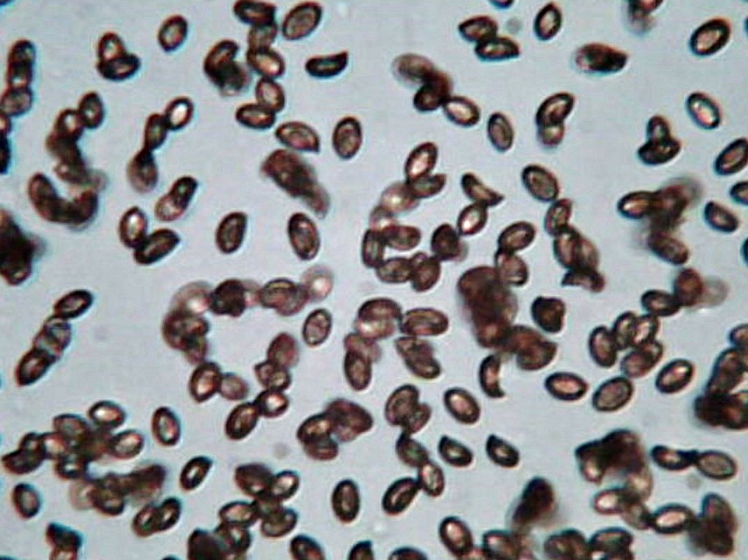Sporen: oval mit einer seitlicher "Spitze", glatte Oberfläche